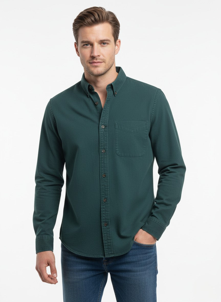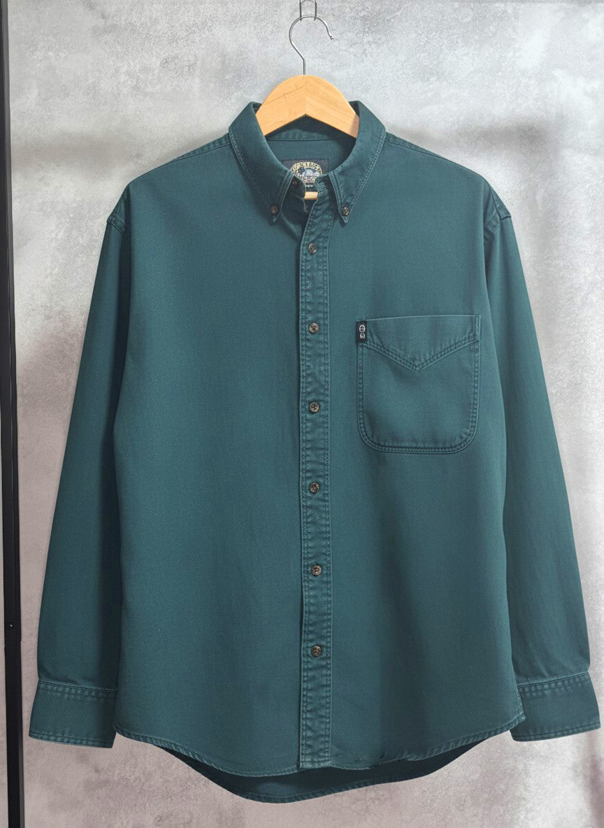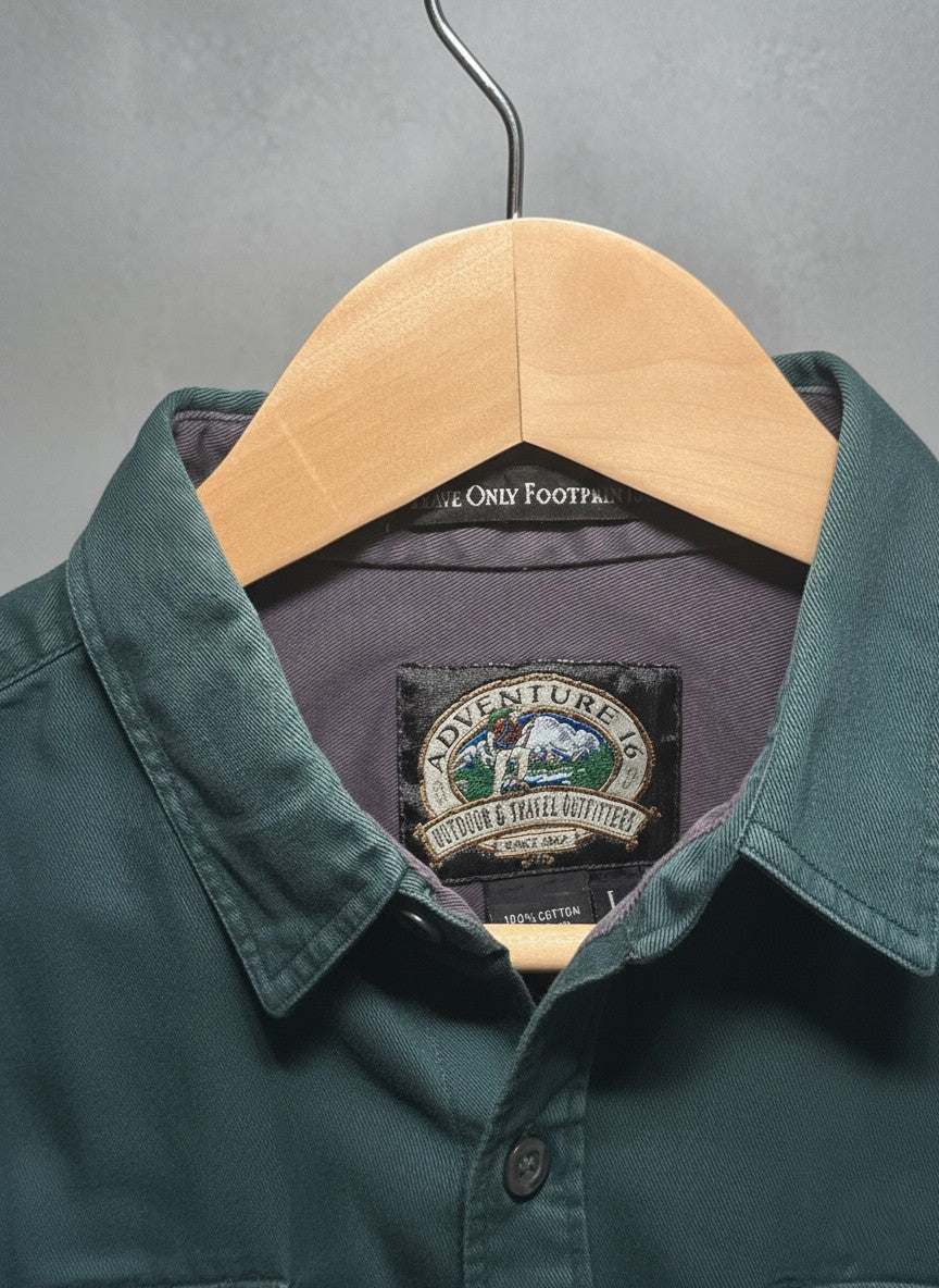上質なコットンを使用したADVENTURE 16の長袖シャツ。程よい厚みとハリのある生地が、着込むほどに味わいを増していきます。落ち着いたグリーンカラーが品よく映え、街でも自然の中でも活躍する万能な一着です。
